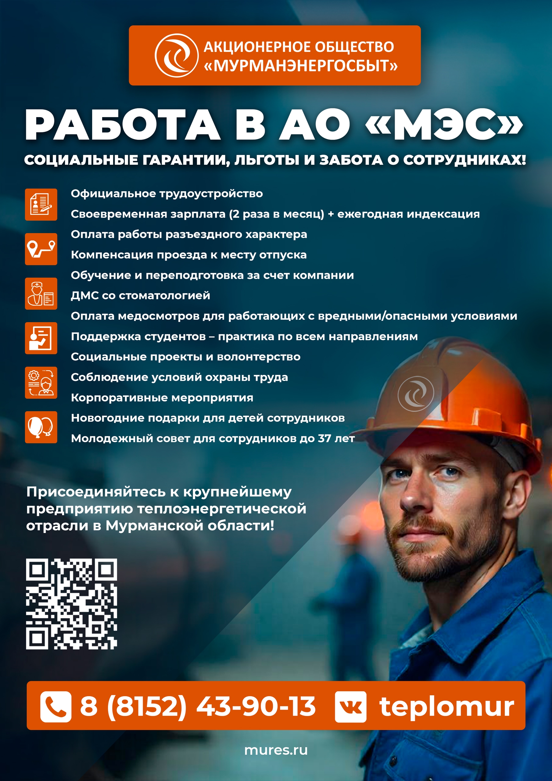 Приходите, если хотите работать в стабильной компании, обеспечивающей теплом города Заполярья, и цените: