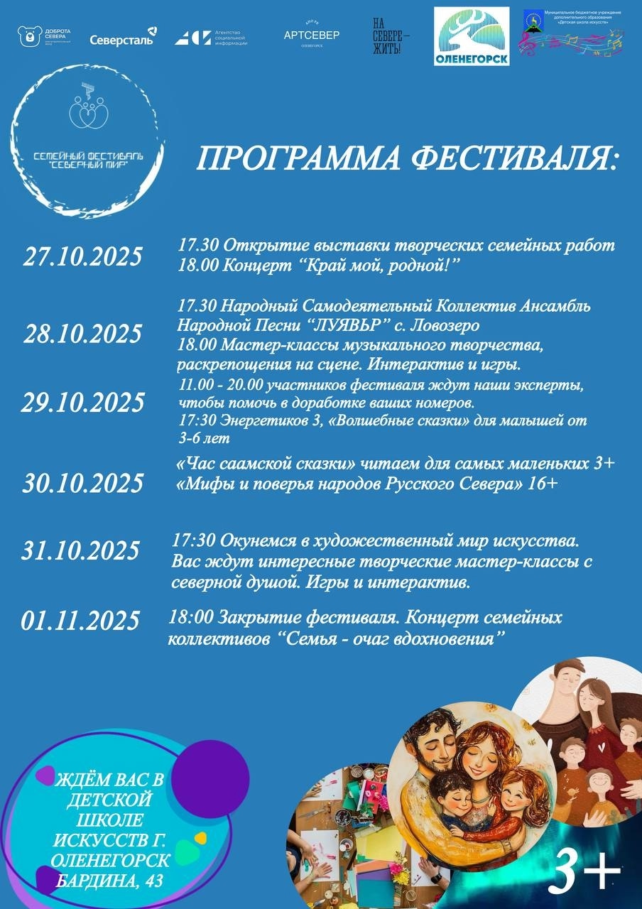 В Оленегорске с 27 октября по 1 ноября пройдет семейный фестиваль «Северный мир». Организатором мероприятия выступает Детская школа искусств.