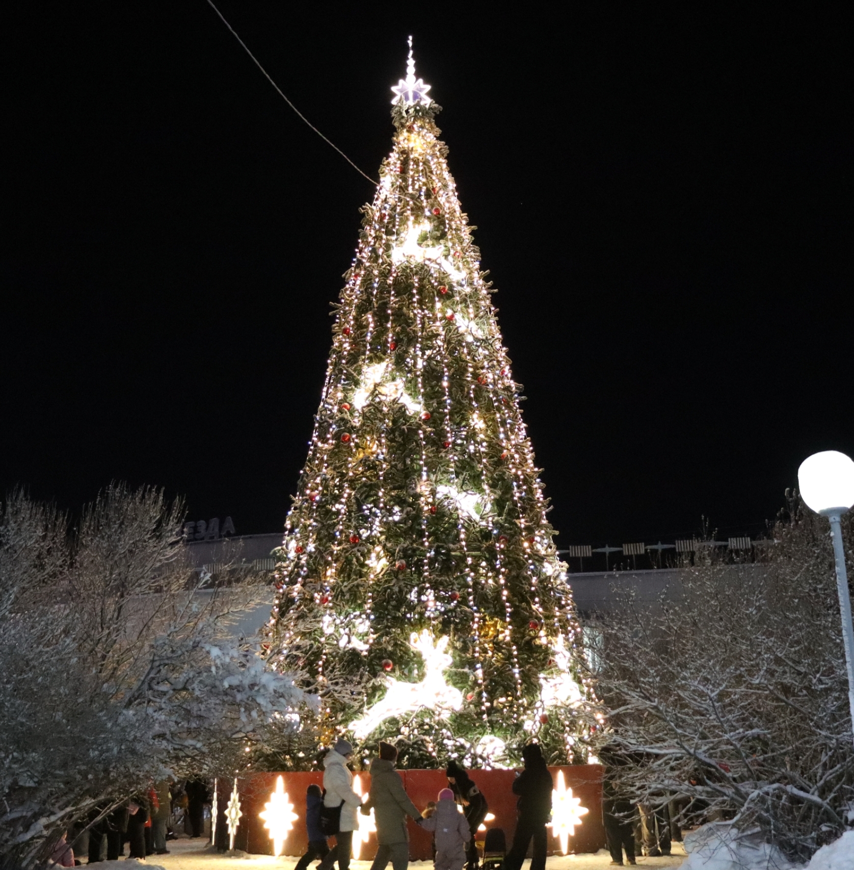 В волшебном ритуале приняли участие артисты Центра культуры и досуга «Полярная звезда», Дед Мороз в роскошном зимнем одеянии, Морозко и глава администрации города Сергей Пашинский.