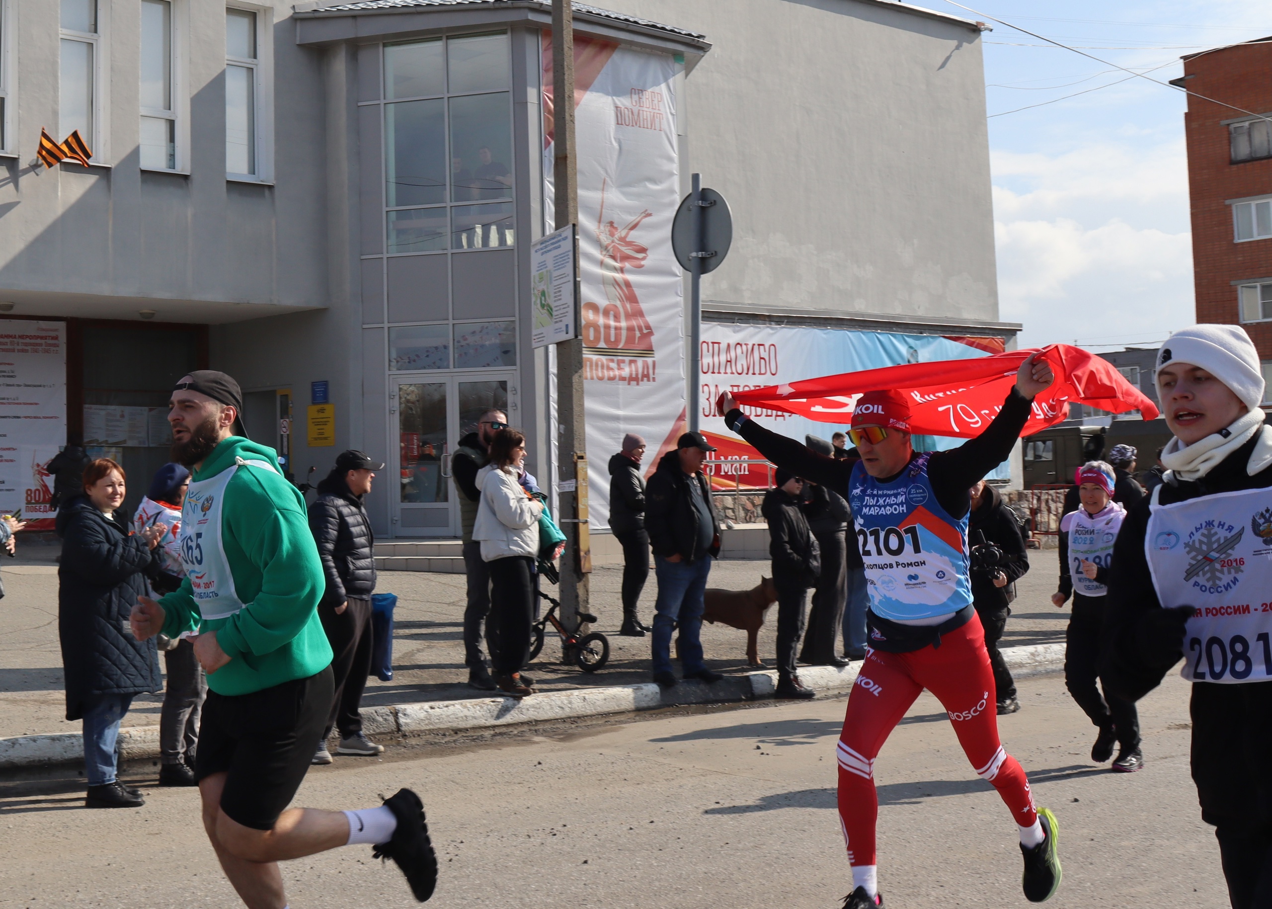 Легкоатлетический пробег «Память» стал одним из первых мероприятий празднования 80-летия Победы в Оленегорске. Более 350 спортсменов и любителей бега из Оленегорска, поселка Высокий и Протоки приняли участие в торжественном забеге. Дети преодолели дистанцию в 700 метров, а взрослые – символические 1945 метров вокруг сквера на Ленинградском проспекте. Все участники были награждены памятными призами.