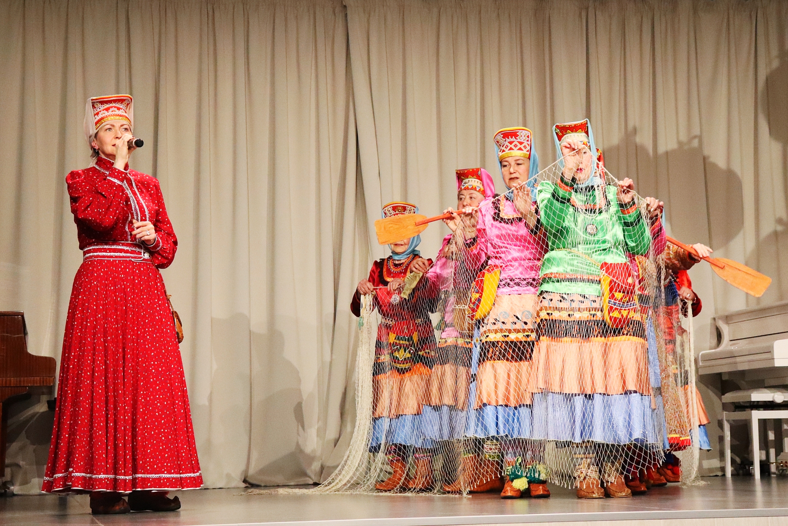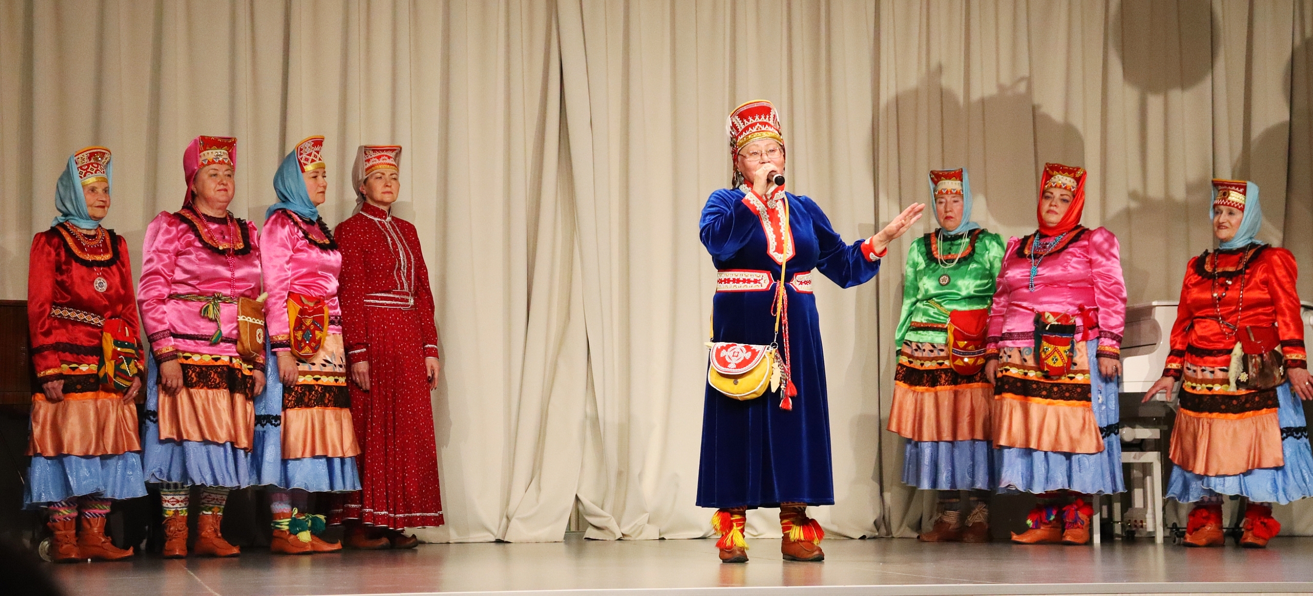 Концертный зал наполнился неповторимыми звуками — начался концерт ансамбля «Луявьр» из села Ловозеро. Этот коллектив — живая легенда, вот уже 96 лет бережно хранящая традиции саамского народа. Само название «Луявьр» в переводе с саамского означает «Ловозеро».