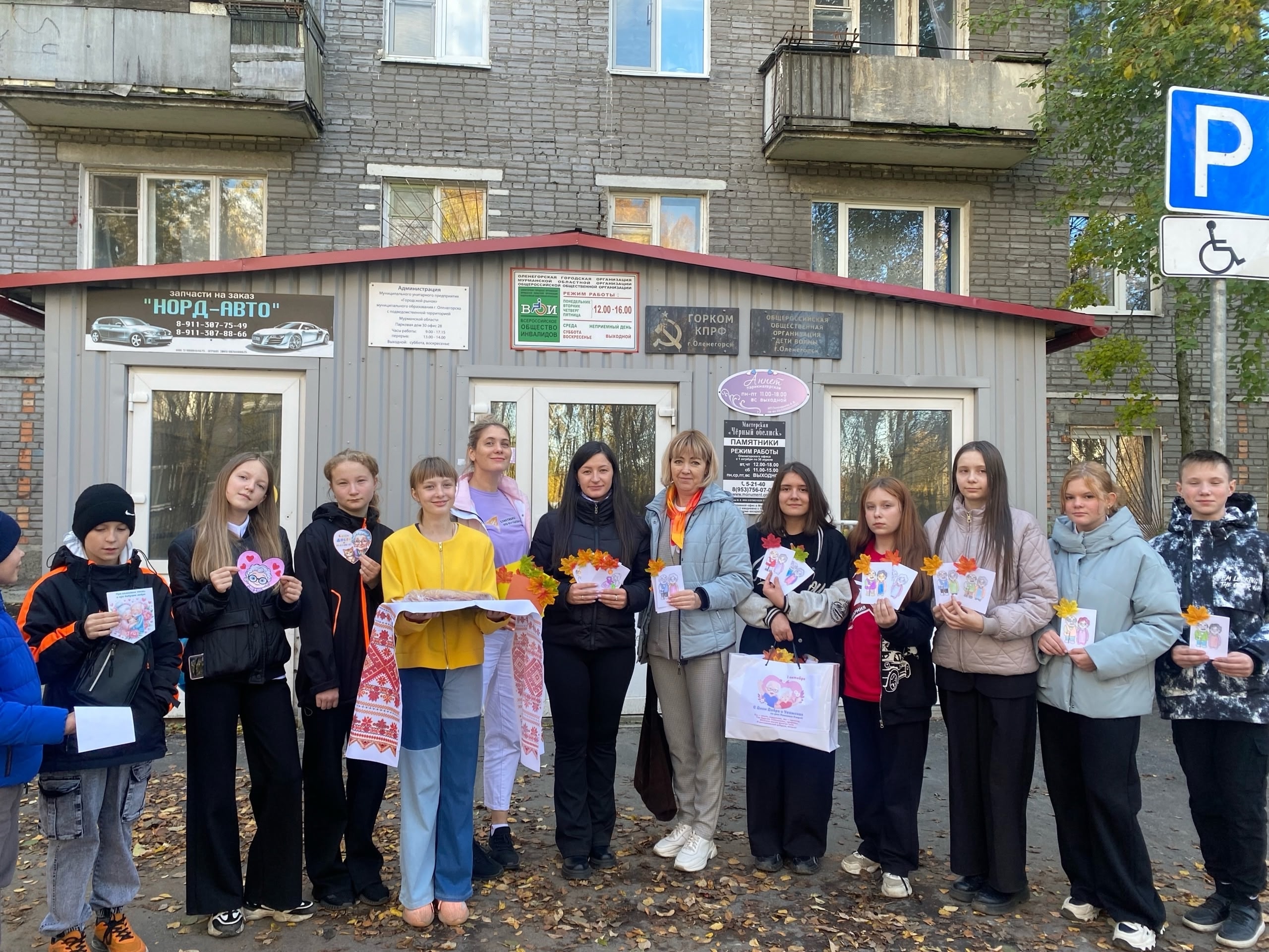 Ученики школы №21 собрали сладкие подарки и подготовили открытки, активисты школы №7 провели акцию «Кленовый листочек», вместе они приготовили вкусный брусничный пирог и навестили Оленегорскую городскую организацию инвалидов.