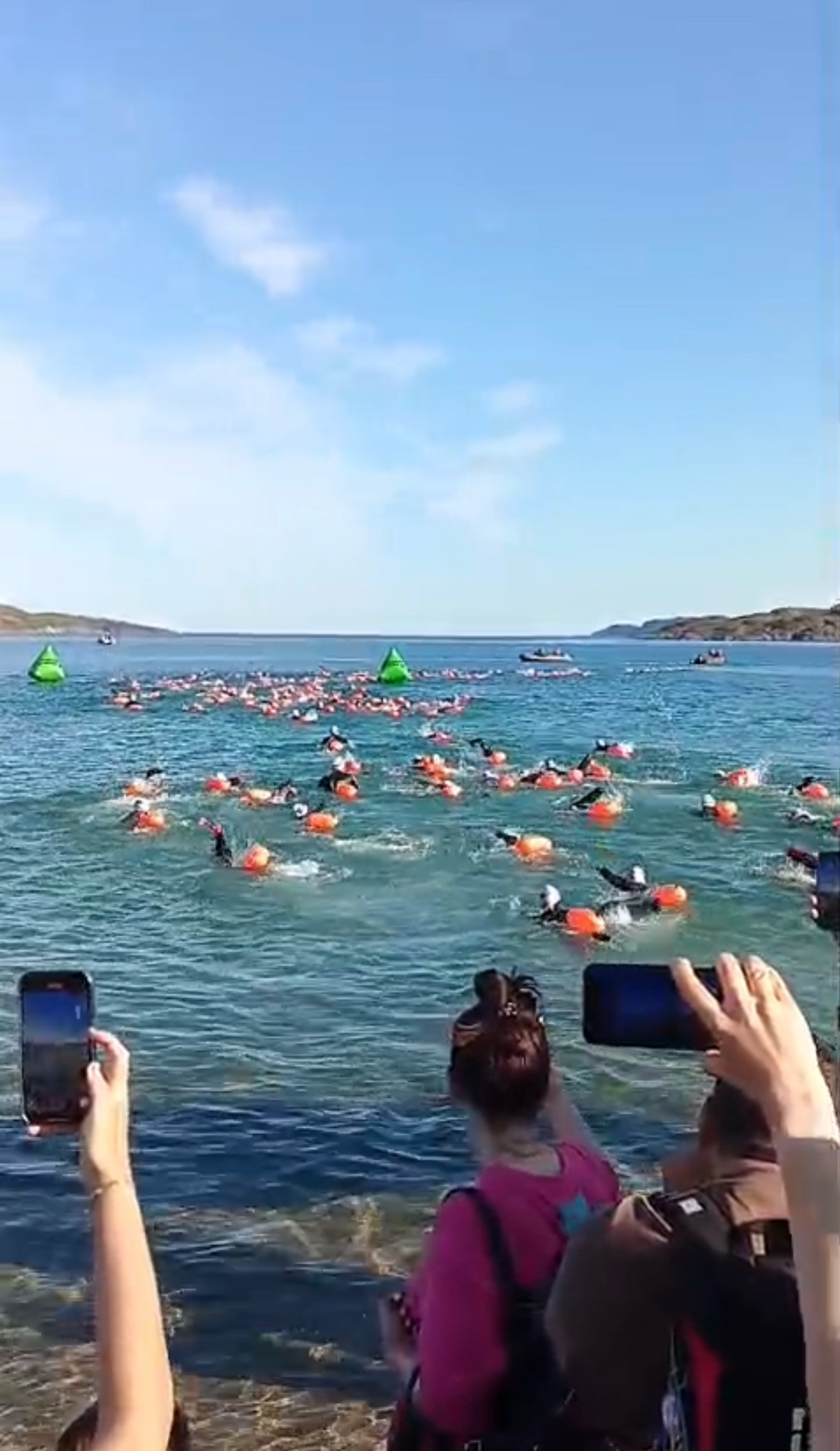 Старт заплыву был дан на рассвете, для этого были идеальные условия: абсолютный штиль, яркое солнце, полный прилив, вода +9°C.