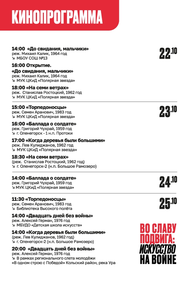 С 22 по 25 октября в нашем городе пройдет уникальная кинопрограмма «Во славу Подвига: искусство на войне».