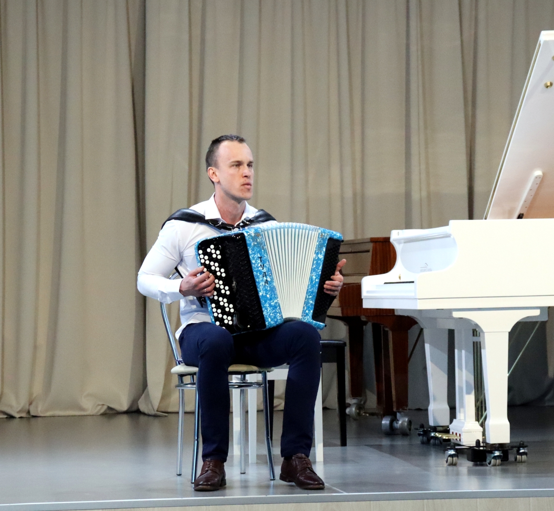 Зал восторженно аплодировал Алданову Кириллу, чье виртуозное исполнение «Либертанго» Астора Пьяццоллы на аккордеоне захватило с первых звуков — страстное и гармоничное, оно не оставило никого равнодушным. Проникновенное звучание песни Николая Носкова в исполнении Гурова Кирилла затронуло самые тонкие струны души.