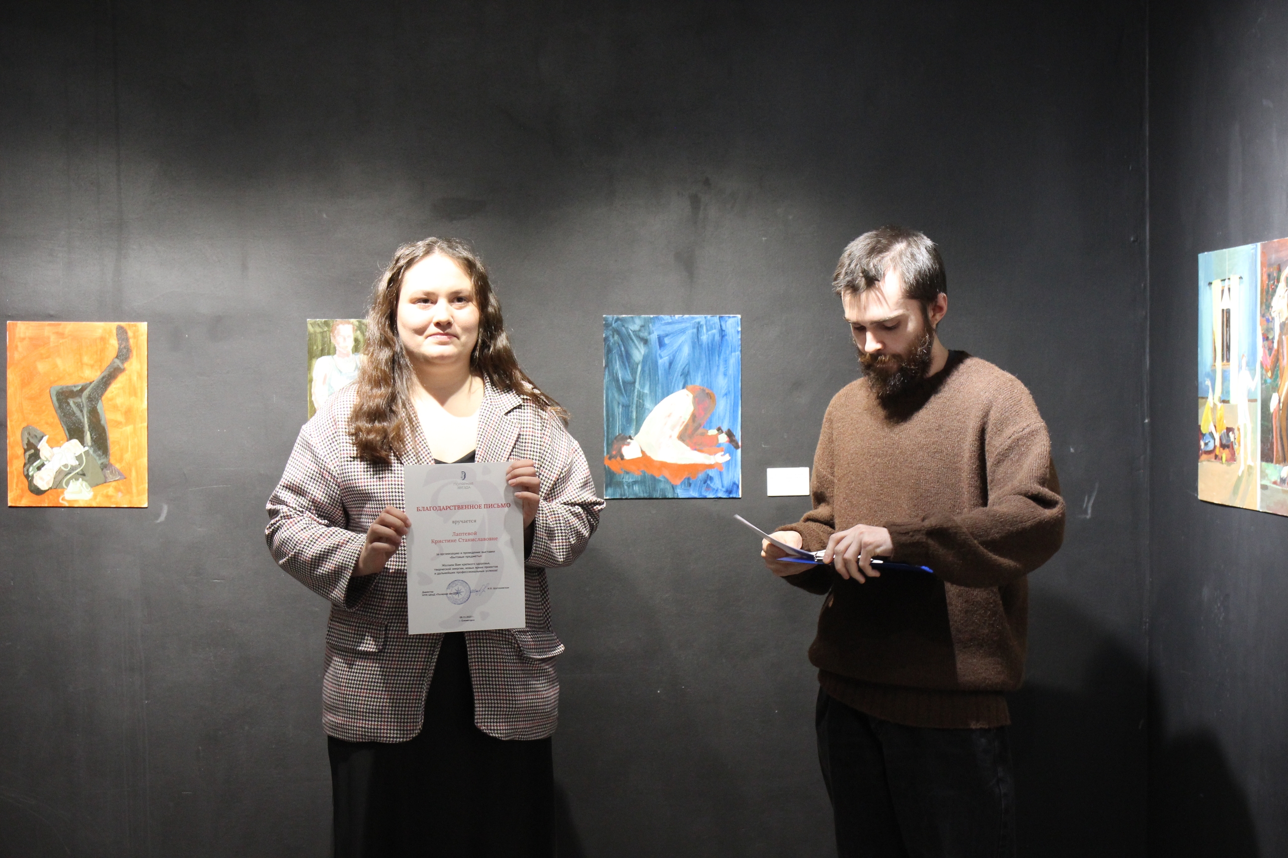 Кристина — талантливый художник и дизайнер, преподаёт изобразительное искусство в школе № 21 и ведёт занятия в эстетическом центре школы № 4. На выставке она представила свои работы: и отдельные полотна, и целые серии. Темы творчества — близкие люди, философские размышления и исторические корни.