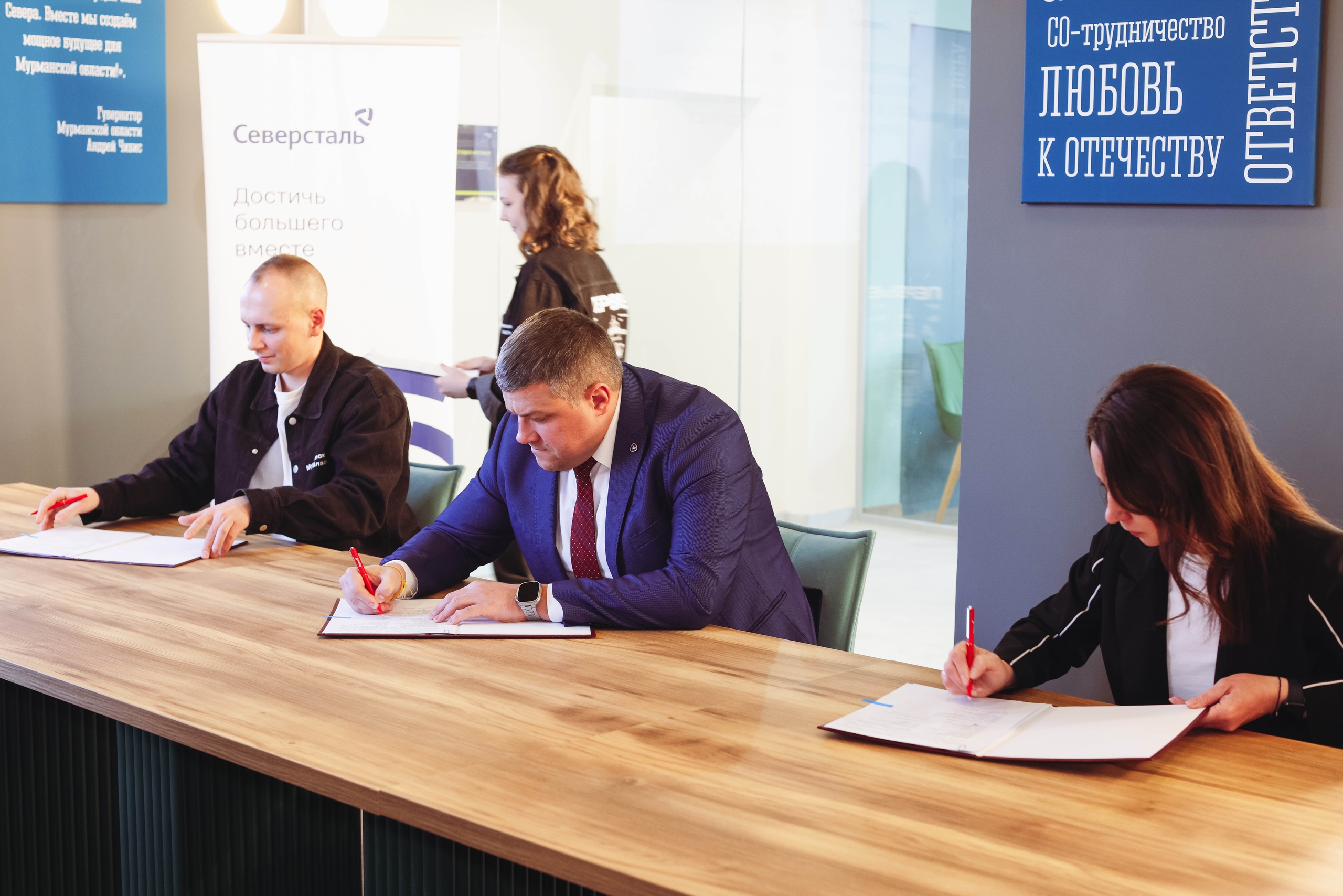 18 февраля в Мурманске состоялась церемония подписания трехстороннего соглашения о сотрудничестве в сфере молодежной политики. Документ закрепил партнерские отношения между предприятием «Олкон» компании «Северсталь», региональным отделением «Движения Первых» и Комитетом молодежной политики Мурманской области.