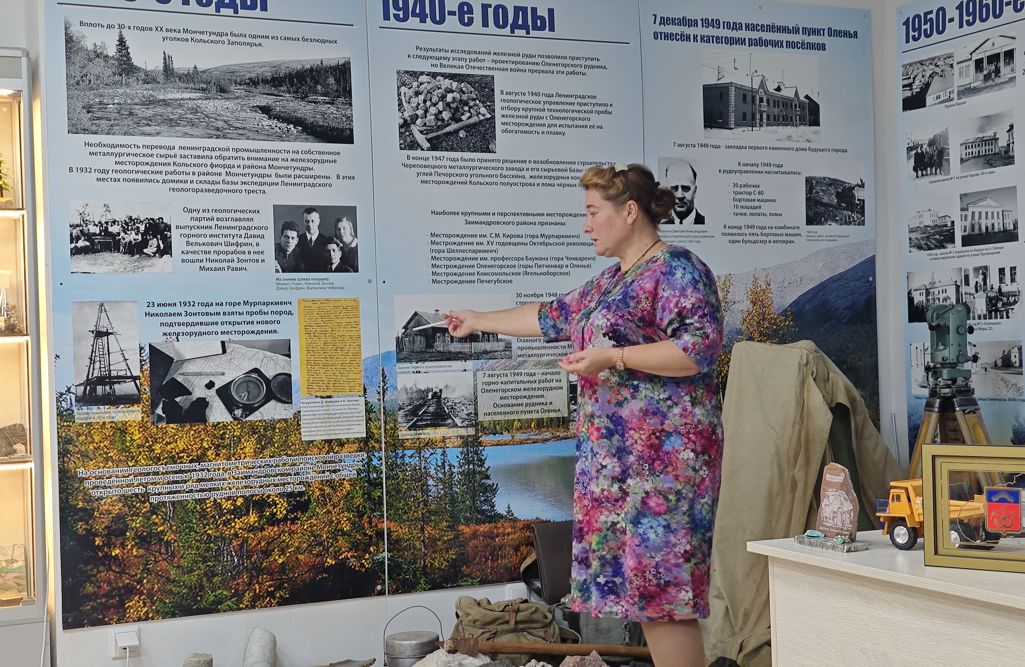 Участники побывали на тематической экскурсии «Города Кольского Заполярья. Оленегорск – город горняков». Специалист по экспозиционной деятельности музея рассказала гостям о становлении градообразующего предприятия – Оленегорского горно-обогатительного комбината, а также о начале первых горных работ на сопке Оленья и о том, что сегодня представляет собой масштабный промышленный комплекс.