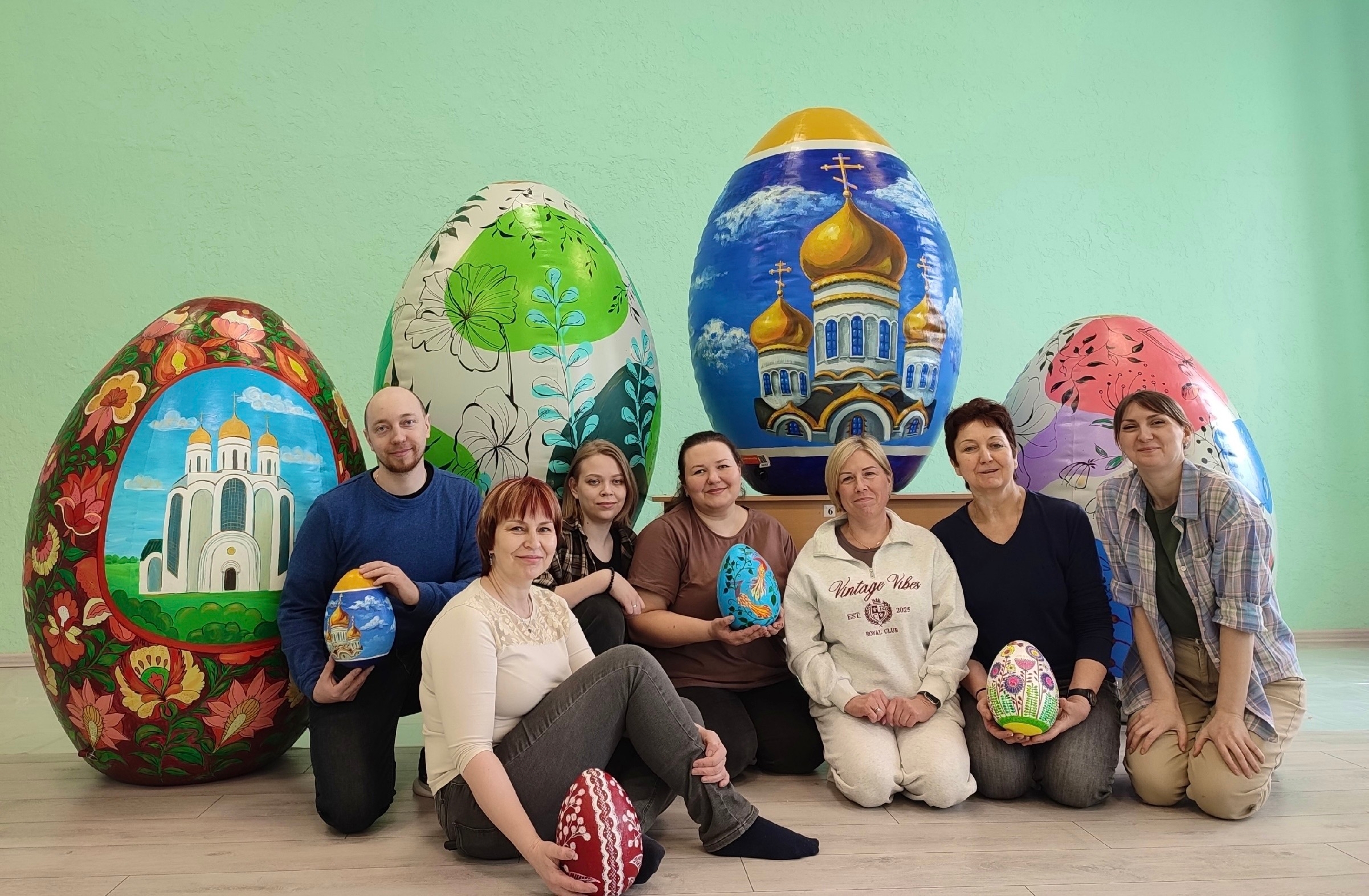 Педагоги художественного отделения Детской школы искусств взялись за необычное дело: в свободное время они расписывали масштабные пасхальные яйца. Эти красочные изделия вскоре появятся на территории Храма преподобного Димитрия Прилуцкого и создадут особую атмосферу торжества.