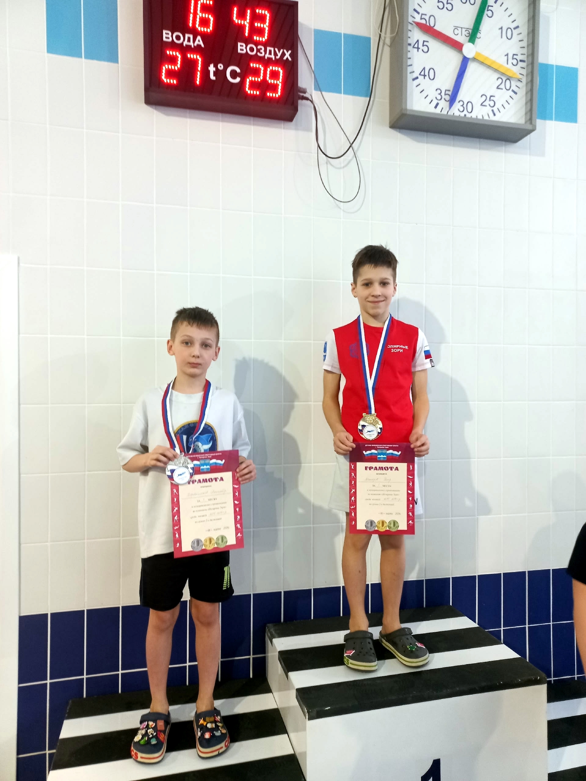 Коробейщиков Александр: 1 место — 100 м брасс, 2 место — 100 м комплексное плавание, 2 место по сумме двух дистанций, выполнил норматив III спортивного разряда.