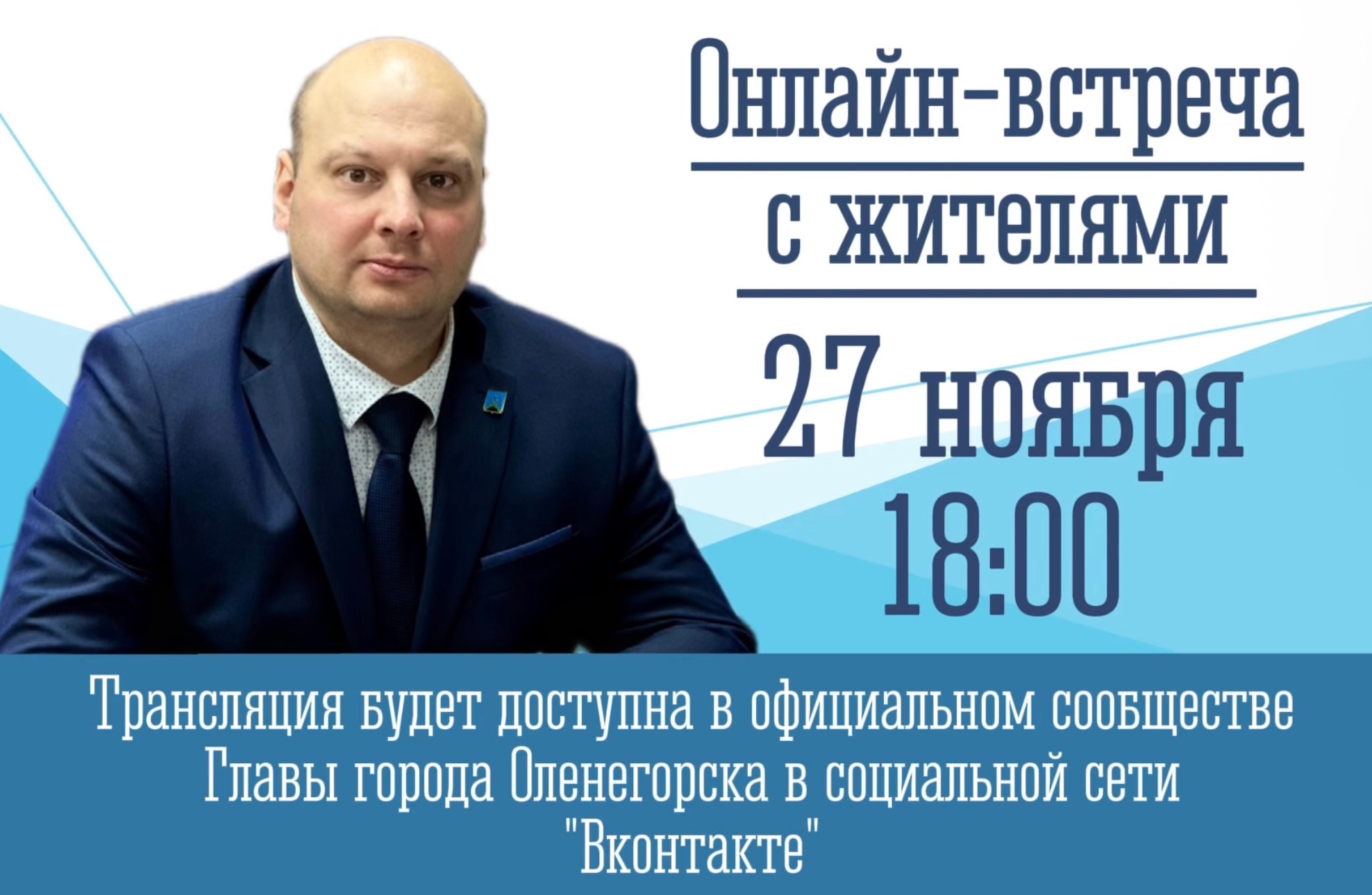 Глава администрации города Оленегорска Сергей Пашинский приглашает всех горожан на онлайн-встречу, которая состоится 27 ноября в 18:00.