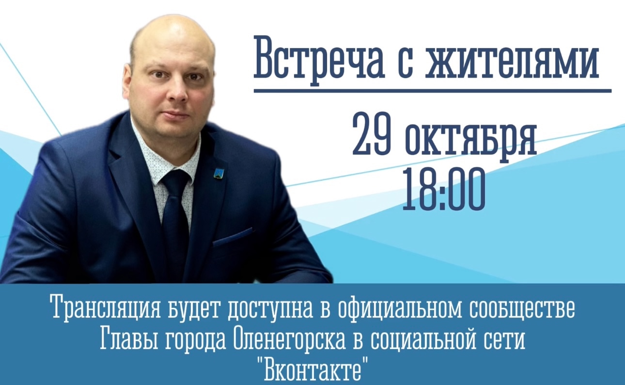 Глава администрации Оленегорска Сергей Пашинский приглашает всех жителей на встречу, которая пройдет 29 октября в 18:00 по адресу: