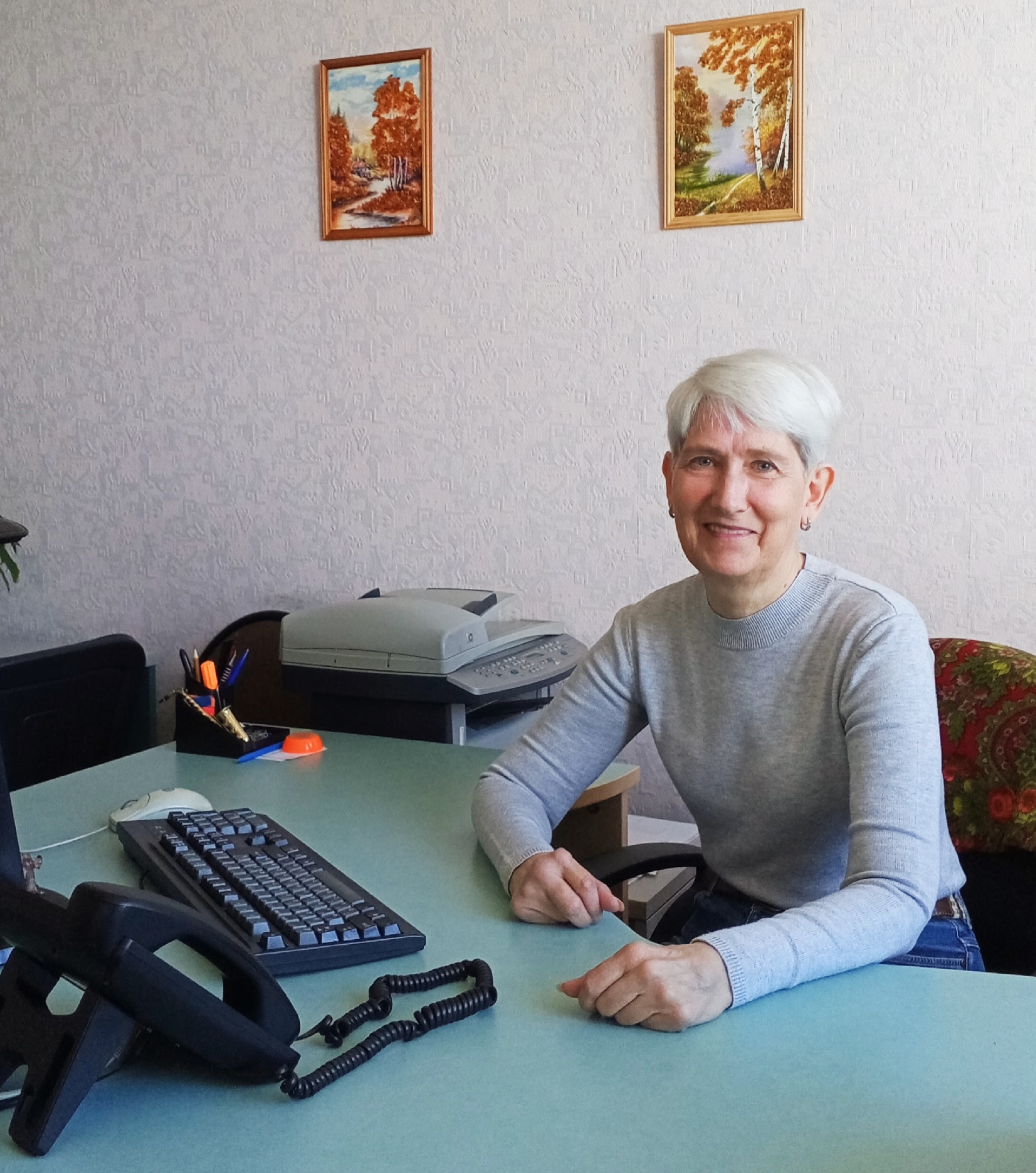 «Я начала свой трудовой путь на комбинате в ноябре 1985 года с должности табельщика и кладовщика в Диатомитовом цехе. В 1986 году попала на Бауманский рудник, работала в должности секретаря, также совмещала должности табельщика и кладовщика. Ушла на пенсию в 2020 году, отработав на комбинате 35 лет. Последним рабочим местом была должность помощника руководителя Горного управления. На протяжении долгих лет занималась общественной работой, более 20 лет проработала в избирательных комиссиях».