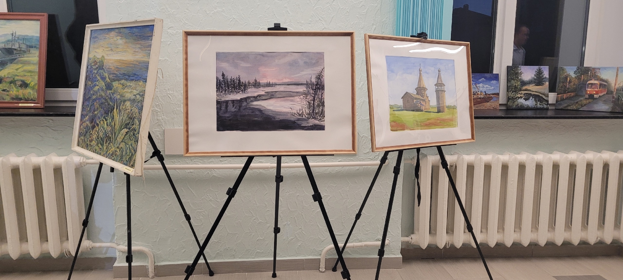 В фойе школы работала выставка творческих работ педагогов из Оленегорска и Детской школы искусств поселка Высокий.