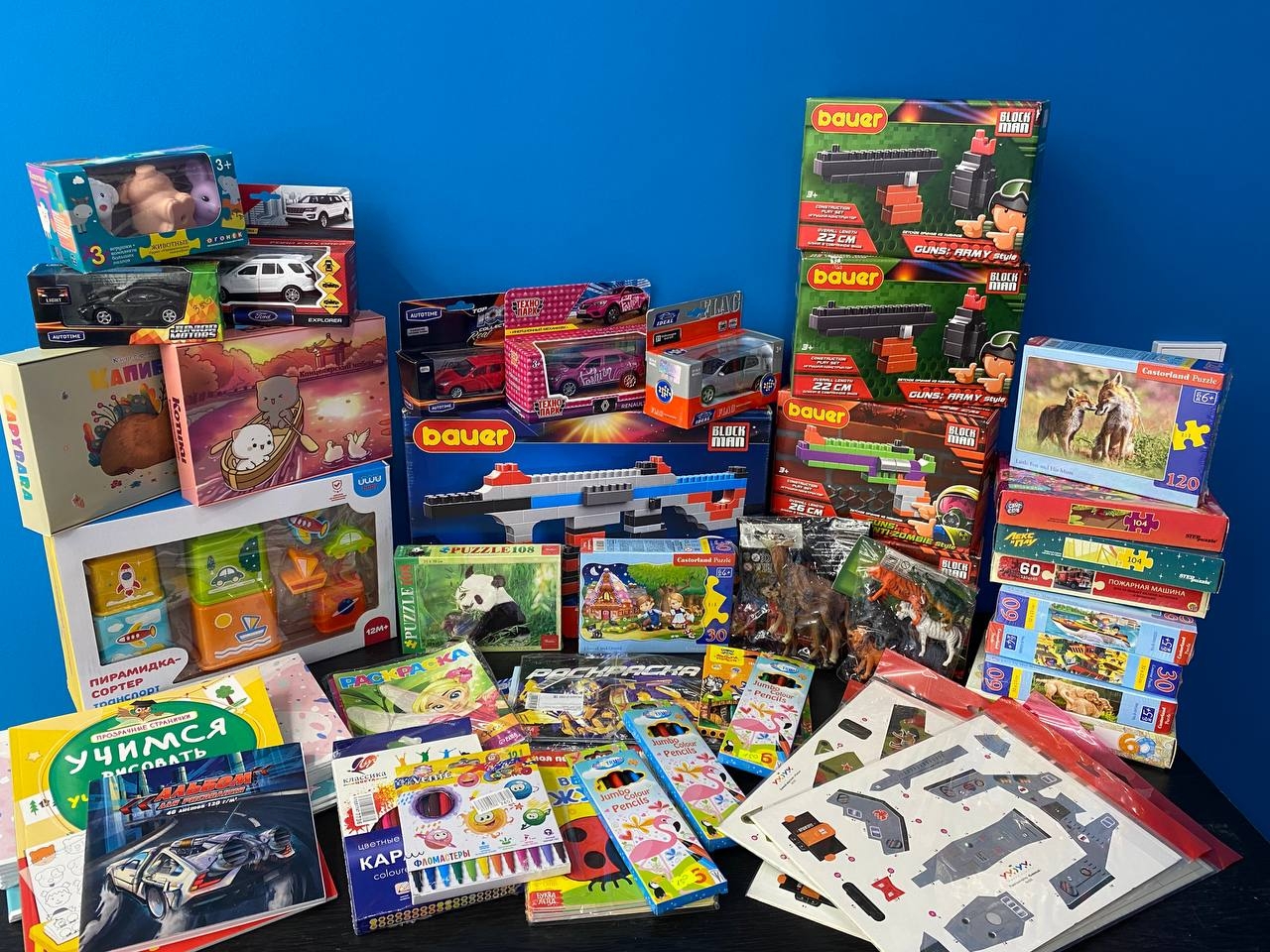 Принести можно только новые игрушки (кроме мягких), канцелярию, книги, раскраски, настольные игры и наборы для творчества — все в заводской упаковке. Поможем детям вместе!