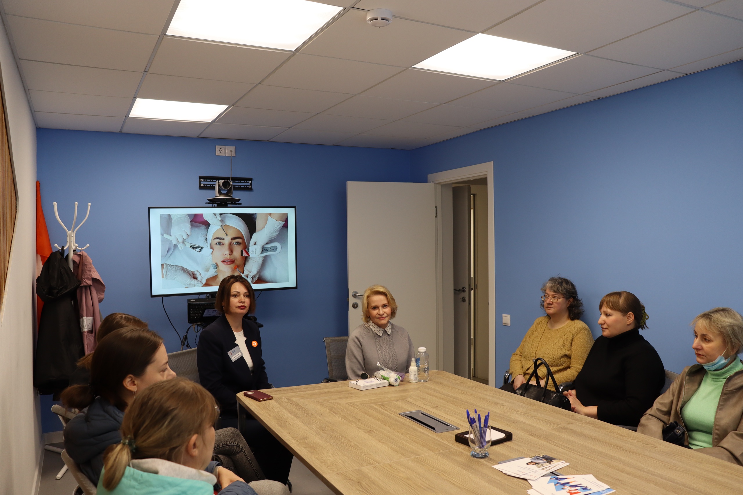 На встрече обсуждались важные темы: возможности профессиональной реализации через самозанятость и ИП, секреты профессионального ухода за кожей, программы переобучения и практические навыки ухода за лицом.