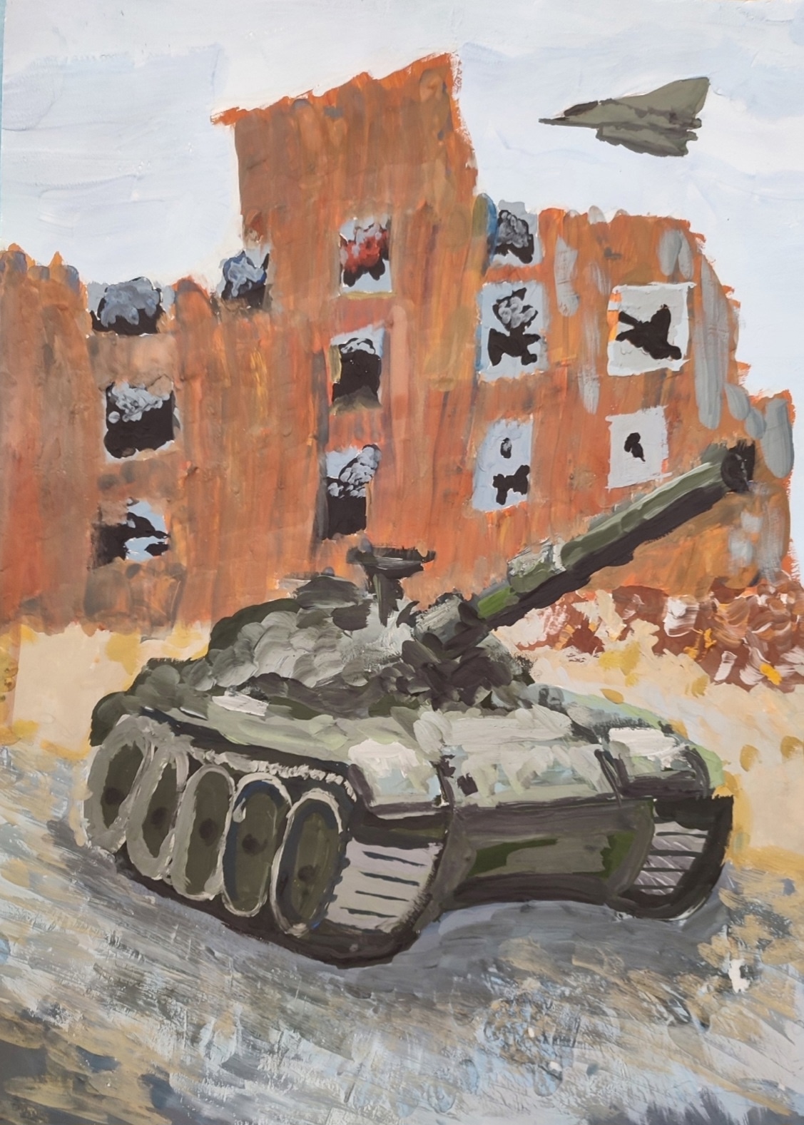 Юлия Астахова, ученица преподавателя Сергея Сальникова, стала лауреатом II степени в номинации «Живопись» среди участников 9-12 лет. Её работа «Боевая работа» впечатлила жюри конкурса. И теперь впечатляет вас.